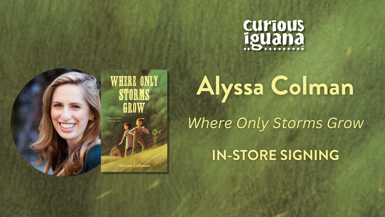 Join us at Curious Iguana at 6:00 pm on Wednesday, October 8 for a meet-and-greet with author Alyssa Colman as she promotes her new book, Where Only Storms Grow. After spending the day visiting schools, Alyssa will be at the Iguana in the evening to meet fans and sign books!