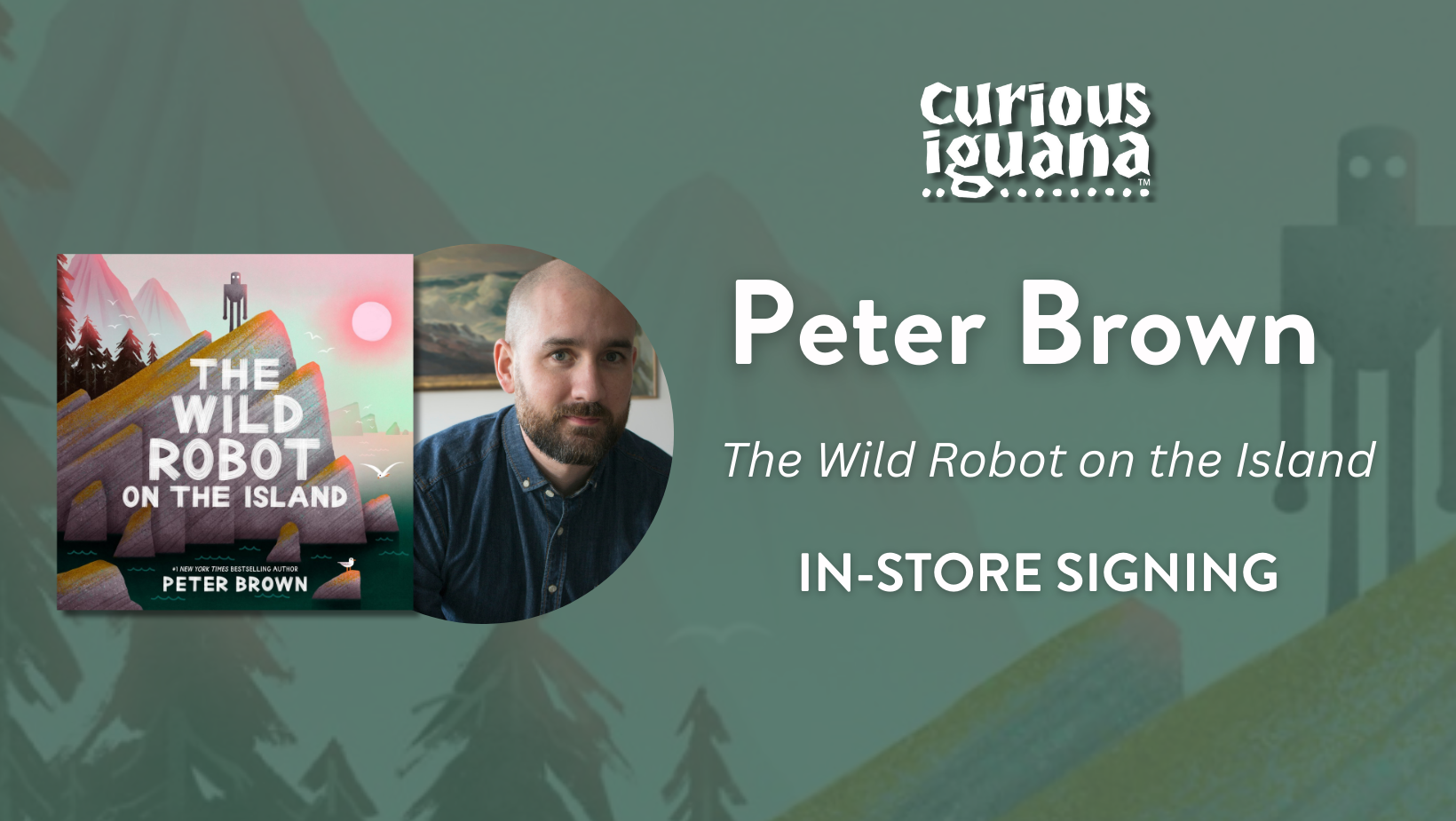 Join us at Curious Iguana at 6:00 pm on Wednesday, November 12 for a meet-and-greet with NYT bestselling author Peter Brown as he promotes his new book, The Wild Robot on the Island. After spending the day visiting schools, Peter will be at the Iguana in the evening to meet fans and sign books!